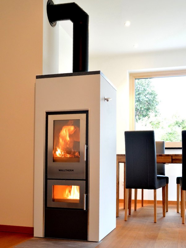 Diese Art des Heizens gibt es auch im Kleinformat in Form eines Zimmerofens, den man ins Wohnzimmer oder in einen anderen beliebigen Raum stellt.